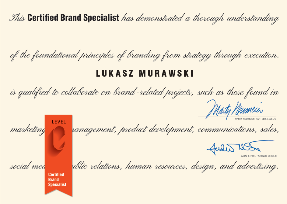 certyfikowanym przez Marty’ego Neumeiera "BRAND SPECIALIST".